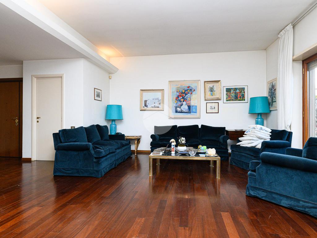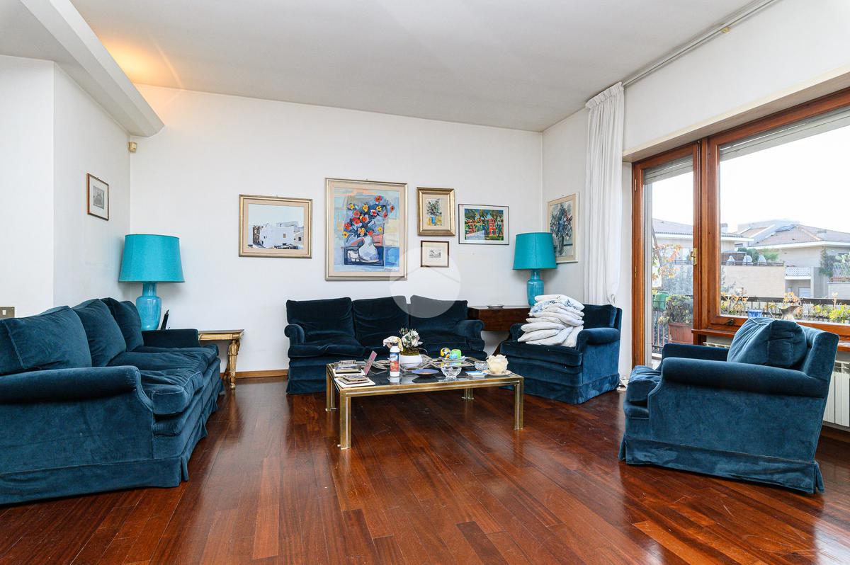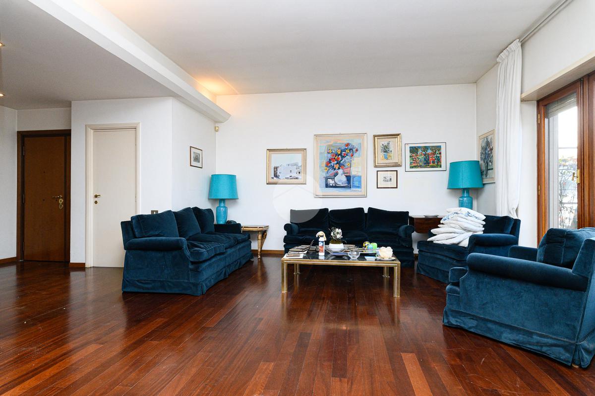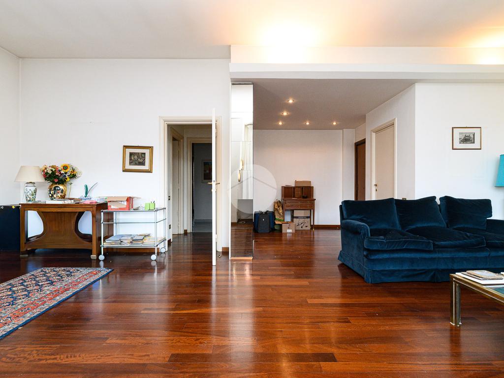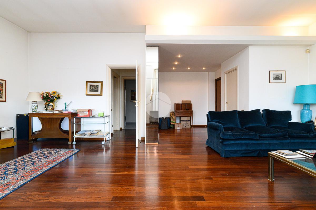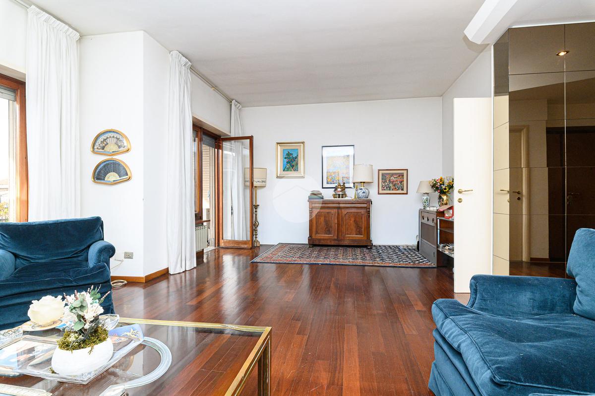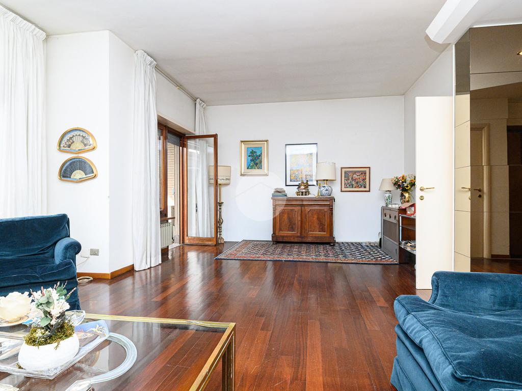 Accedendo all'appartamento, un ampio ingresso introduce in un elegante salone doppio, ambiente accogliente e ben illuminato, perfetto per momenti di convivialità o di relax. Le grandi finestre con affaccio sul verde e l'accesso al balcone abitabile donano continuità tra interno ed esterno, creando un’atmosfera serena e rilassante, ideale per una colazione al sole o una serata in tranquillità.